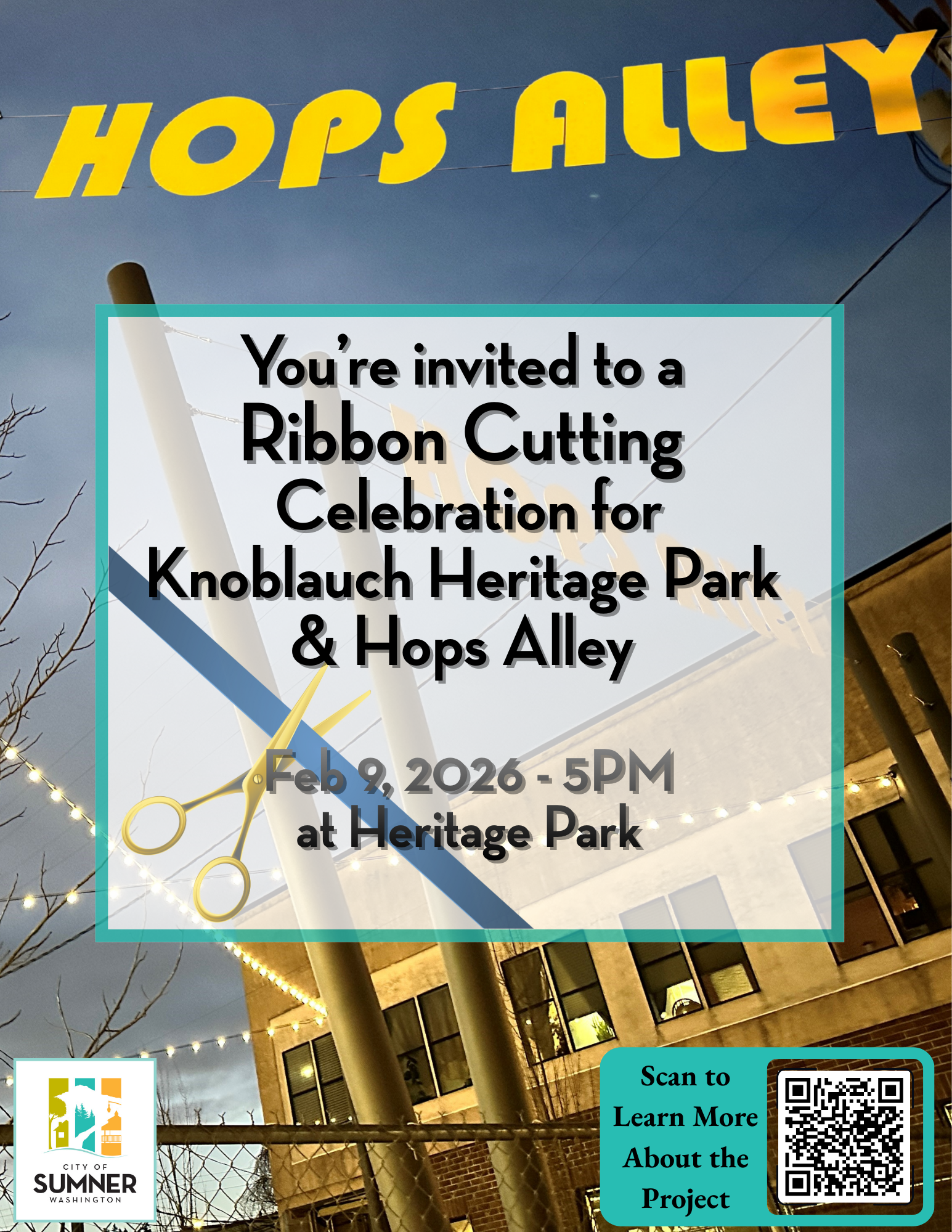 Join us as the City of Sumner cuts the ribbon on Knoblauch Heritage Park & Hops Alley!